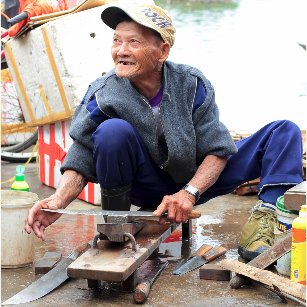 Repasseur sur le marche de Hoi An